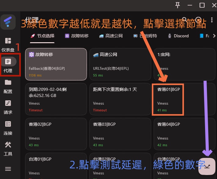 FlClash 支持三種出站模式:規則模式、全局模式、直連模式。默認使用規則模式,這樣只有國外的網站才會經過代理,不會影響國內服務的使用。